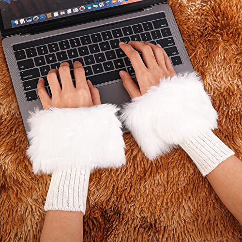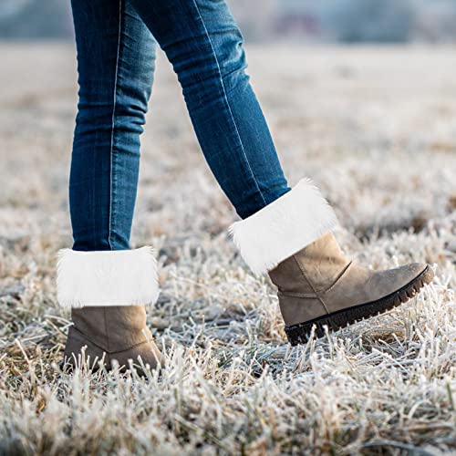 Lusofie Women Short Furry Leg Warmers 1Pair Winter Faux Fur Boot Cuff Fuzzy Fluffy Leg Warmers Knitted Fur Boot Covers Warmers Short Furry Winter Knitted Boot Socks 7