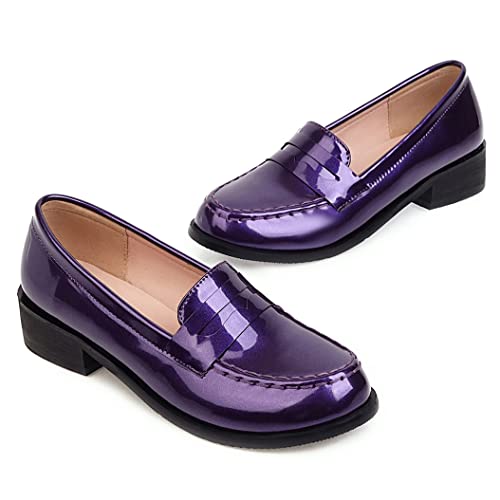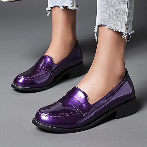 HOT ! Elbslutt Women's Patent Leather Loafers Low Chunky Heel Slip On Pumps Round Toe Casual Shoes