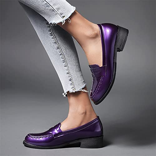 Elbslutt Women's Patent Leather Loafers Low Chunky Heel Slip On Pumps Round Toe Casual Shoes 7