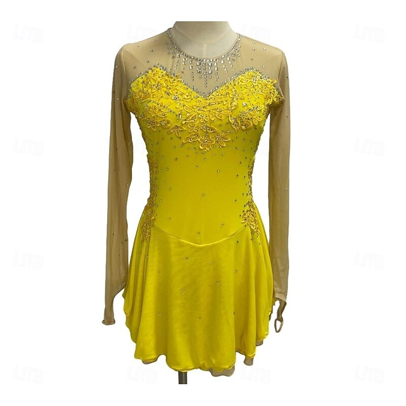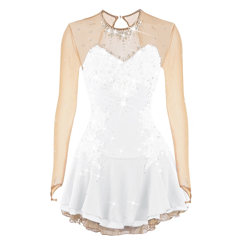 More information about Figure Skating Dress Women's Girls' Ice Skating Dress Outfits Violet White Dusty Rose Flower Open Back Mesh Spandex Competition Skating Wear Handmade Jeweled Rhinestone Long Sleeve Ice Skating Figure