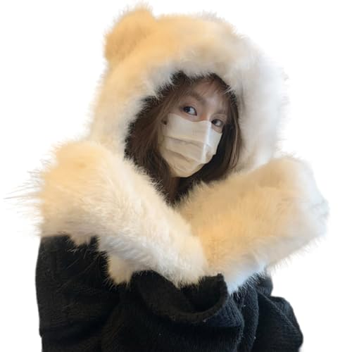 Hats Furry Scarf Hat Gloves Set for Women Outdoor Sports Furry Soft Hat Thickened Headgear Hats for Winter 6