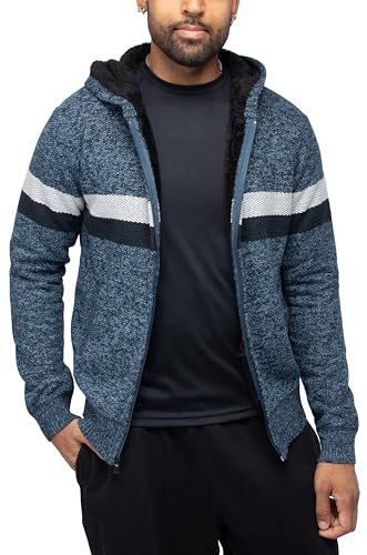 HOT ! X RAY Mens Zip Up Fleece Lined Knit Cardigan Hooded Sweater, Full Zip Classic Fit Sweater with Stripes & Lining