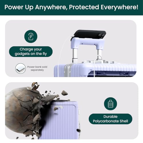Nobl Travel Carry On Luggage, Noble Zipperless Aluminum Frame PC Hard Shell Suitcase, 22.5x15x9.5 Airline Approved, 360° Spinner Wheels, TSA Locks, USB Charging Port, Cup & Phone Holder - Lavender 5