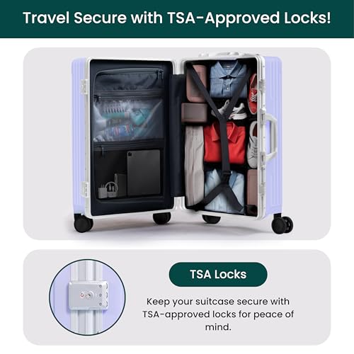 • Strong & Lightweight: Built with a reinforced aluminum frame and impact-resistant polycarbonate shell, this lightweight 9.7 lb. zipperless carry-on is ultra-durable. Dual TSA-approved locks provide extra security, keeping your belongings safe during travel.