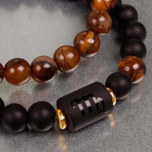 • 【DESIGN STYLE】This virgo zodiac crystal racelet is made of natural black agate stone and tiger eye stone, with each stone beads carefully selected by hand. The middle wheel is engraved with constellation symbols and horoscope names on both sides