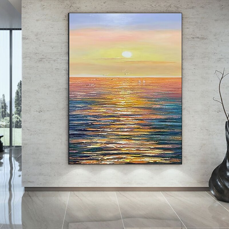 Oil Painting Handmade Hand Painted Wall Art Abstract Knife PaintingLandscape SunriseHome Decoration Decor Rolled Canvas No Frame Unstretched 12