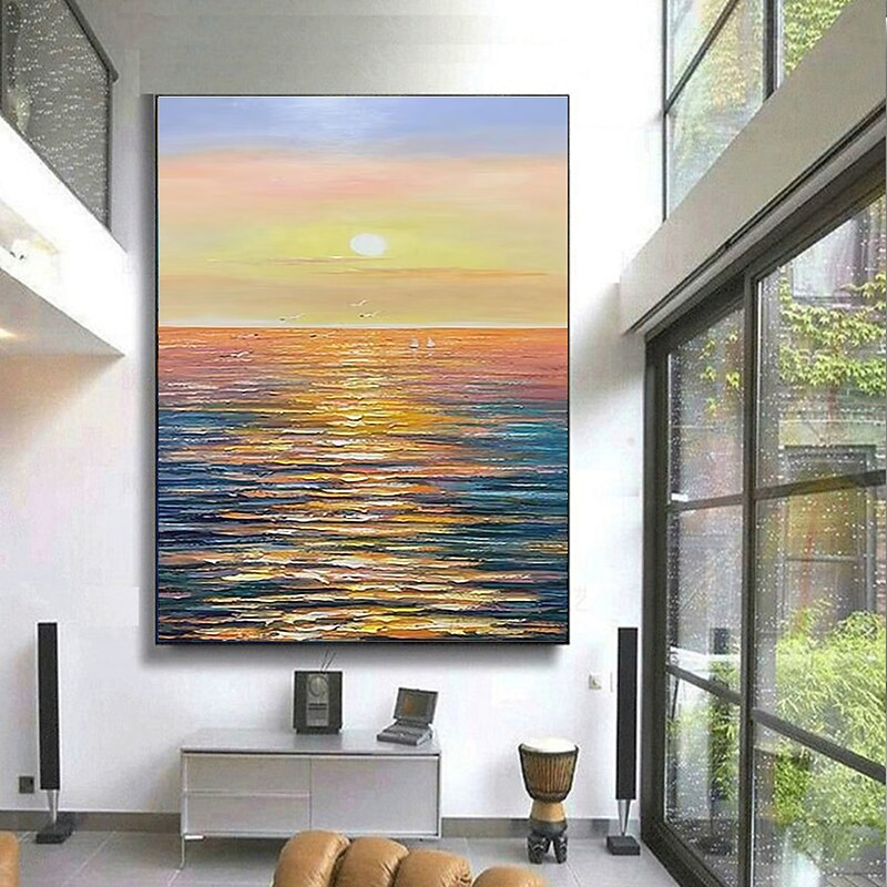More information about Oil Painting Handmade Hand Painted Wall Art Abstract Knife PaintingLandscape SunriseHome Decoration Decor Rolled Canvas No Frame Unstretched