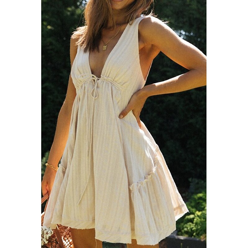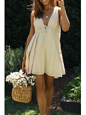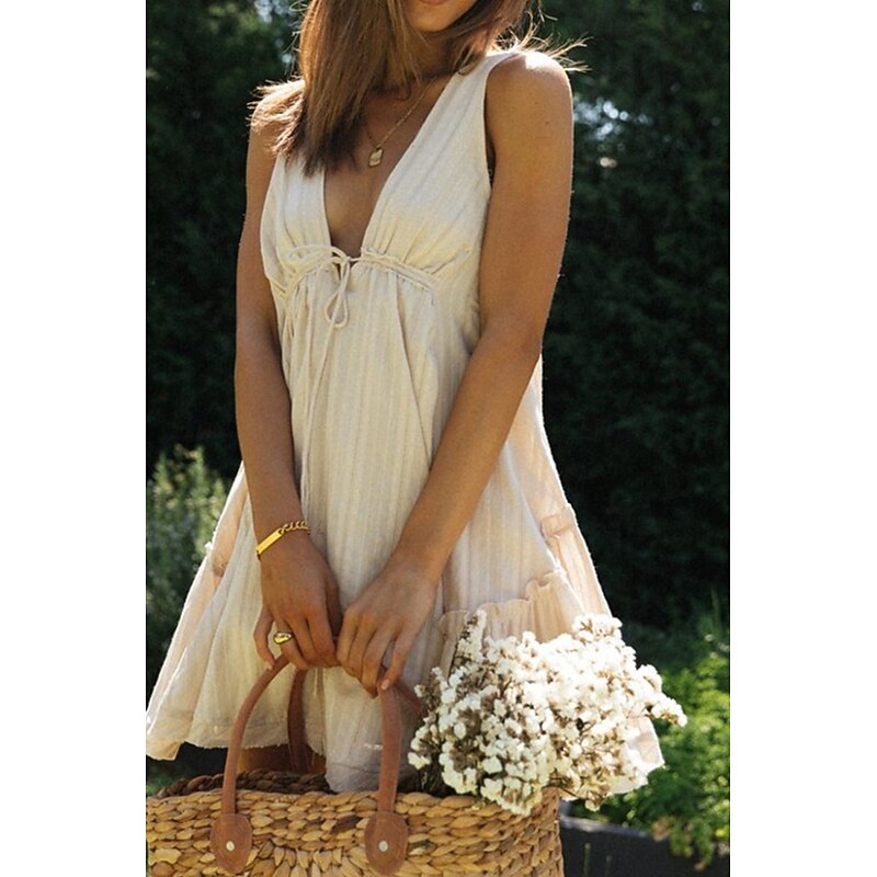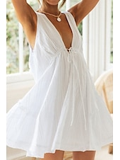 More information about Women's Mini Dress White Dress Graduation Dress Fashion Graduation Going out Regular Fit Plain Sleeveless V Neck White Navy Blue Apricot Summer