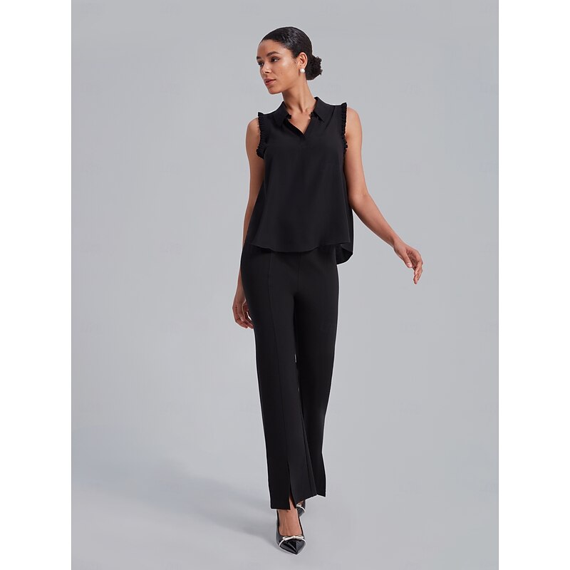 Ruffled Trim Collared Blouse 13