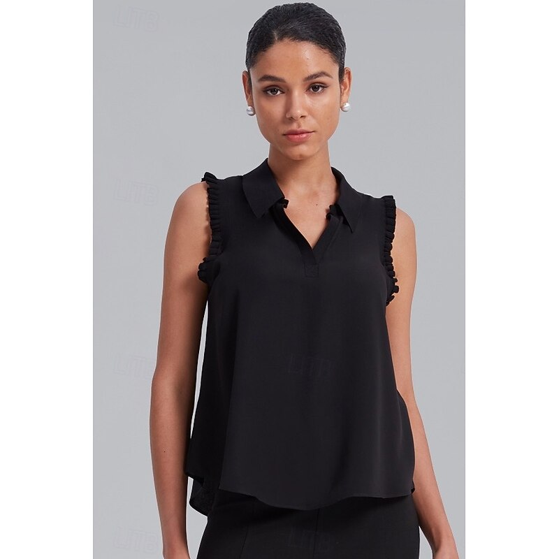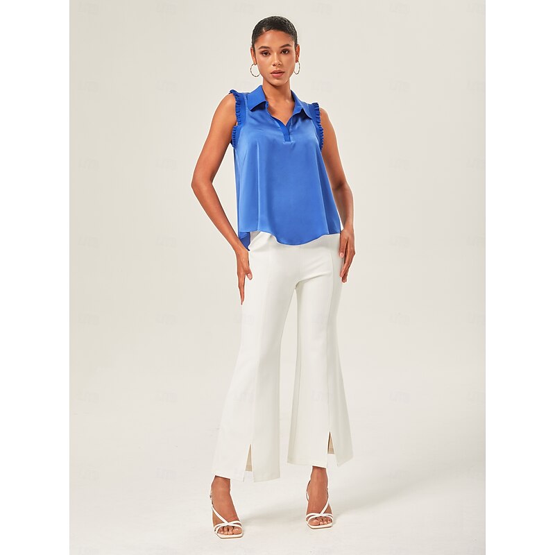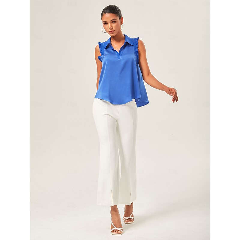 HOT ! Ruffled Trim Collared Blouse