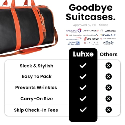 • MAXIMIZE YOUR PACKING SPACE: The Luhxe carry-on luggage bag’s innovative foldable design allows you to pack for 10+ days with ease. It features two interior pockets for toiletries, an external zippered pocket for easy access to your smartphone, ID, or passport, a spacious side pocket for your tablet or laptop, and a dedicated shoe compartment. This convertible garment bag offers organized storage for all your essentials.