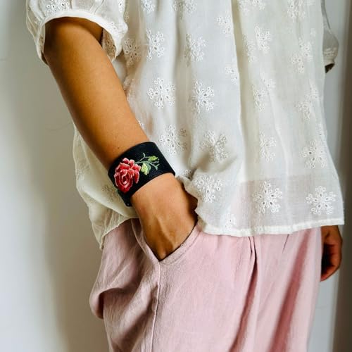 Punk Rock Flower Print Pattern Wristband Wide Leather Cuff Bracelet 4
