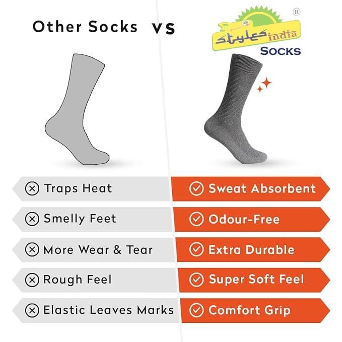 • BREATHABLE AND MOISTURE-WICKING: Thanks to the breathable cotton blend, these socks are designed to keep your feet dry and cool throughout the day. The material effectively wicks moisture away, preventing discomfort caused by sweat, even during extended wear. This makes them an excellent choice for those who spend long hours in formal settings or need to look sharp and feel fresh from morning to night.
