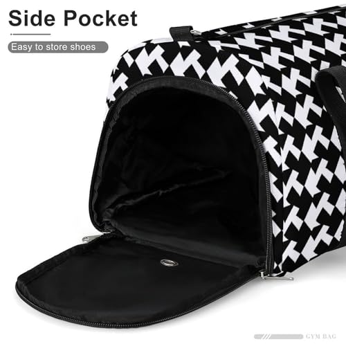 Mens Womens Gym Bag, Houndstooth Black Print Duffle Bags,travel Gym Duffle Bag,garment Duffle Bag,gym Bag with Shoe Compartment 5