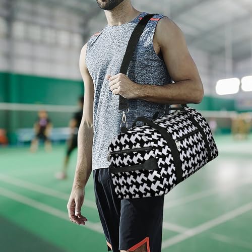 Mens Womens Gym Bag, Houndstooth Black Print Duffle Bags,travel Gym Duffle Bag,garment Duffle Bag,gym Bag with Shoe Compartment 1