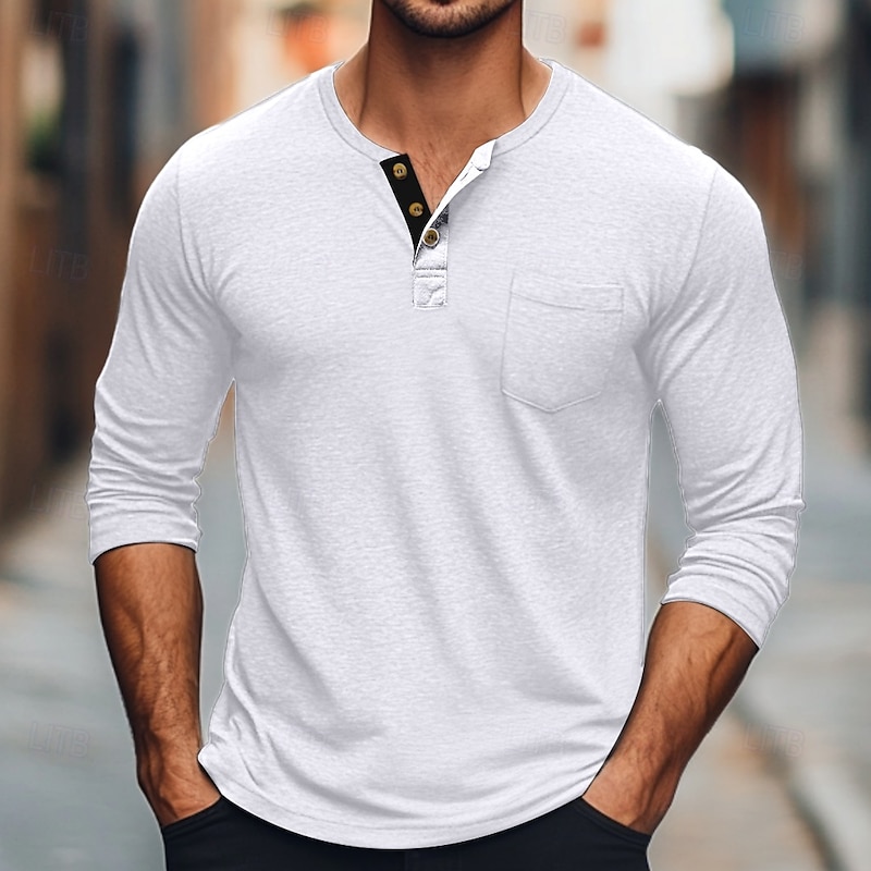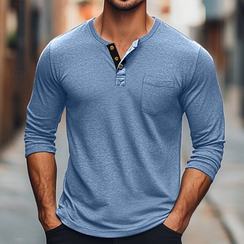 More information about Men's T shirt Henley Shirt Long Sleeve Shirt Plain Henley Street Daily Long Sleeve Pocket Clothing Apparel Fashion Designer Casual Comfortable