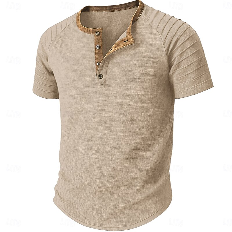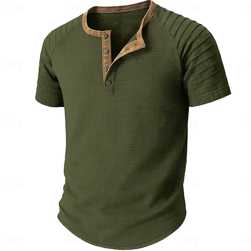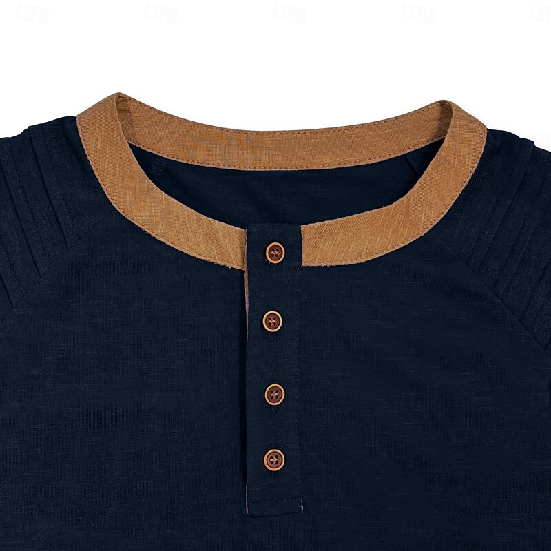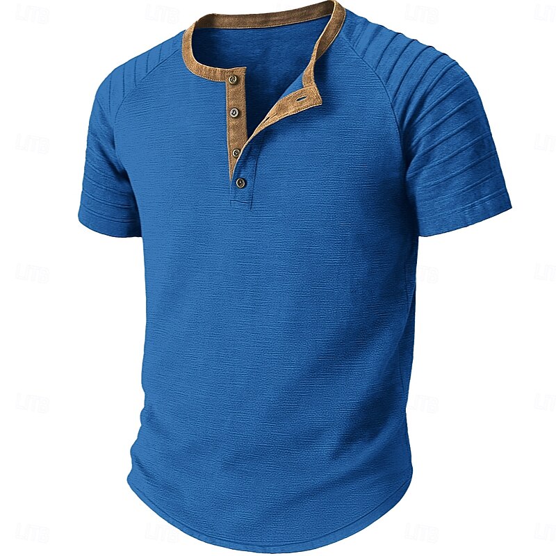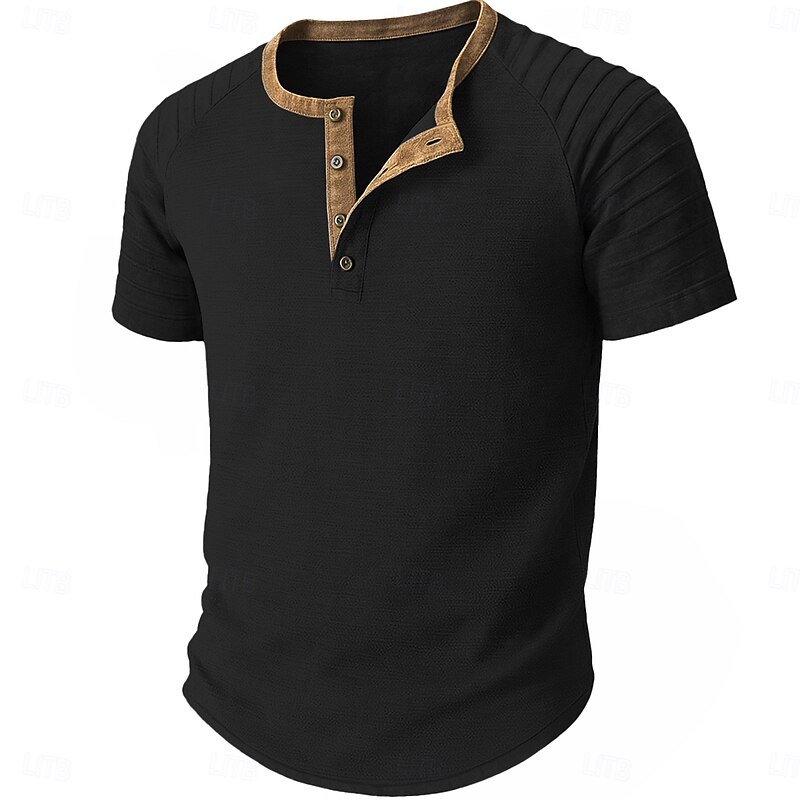 More information about Men's Henley Shirt Tee Short Sleeve Patchwork Fashion Designer Casual Buttons Henley Outdoor Casual Daily Summer Spring Black Navy Blue Blue Henley T-Shirt