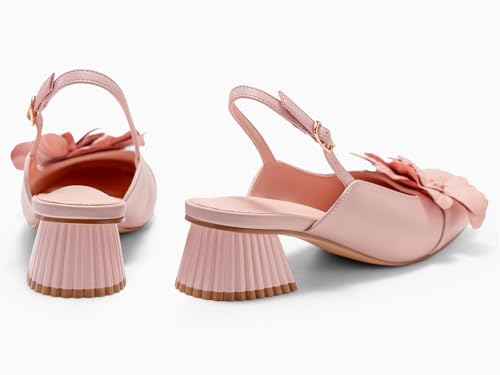 Coutgo Womens Slingback Chunky Heels Flower Closed Square Toe Pumps Work Dress Shoes 3