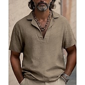 More information about Men's Shirt Linen Shirt Casual Shirt Cotton Shirt Plain Vacation Street Blue Coffee Short Sleeve Turndown Summer Clothing Apparel
