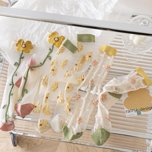 Womens Summer Sheer Socks Mesh Cute Floral Dress Sock Transparent Nylon See Through Stockings 3 Pairs 5