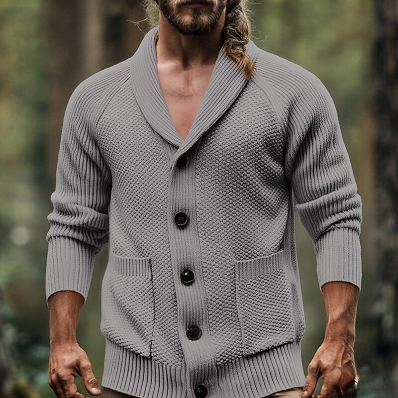 Highlights - Perfect for the fall and winter seasons - Made of comfortable polyester fabric - Features long sleeves for added warmth - Designed for men with a classic and casual style - Ideal for a date night or a vacation getaway - Stylish pocket detail - Shawl collar and lapel neckline add a trendy touch - Knitted with a ribbed style for a cozy look