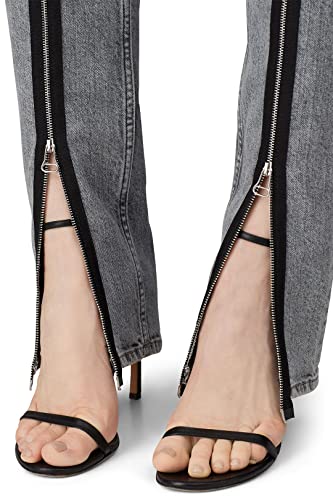 • Black front zippers and split hems highlight the modern appeal of these high-waisted Helmut Lang jeans.