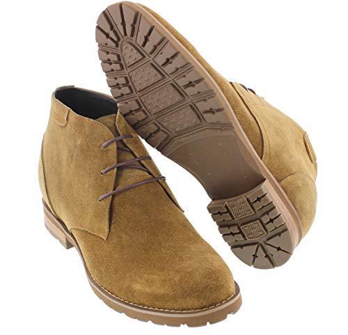 More information about CALTO Men's Invisible Height Increasing Elevator Shoes - Khaki Tan Nubuck Leather Lace-up High-top Chukka Style Dress Boots - 3 Inches Taller - T65561 - Size 6.5 D(M) US