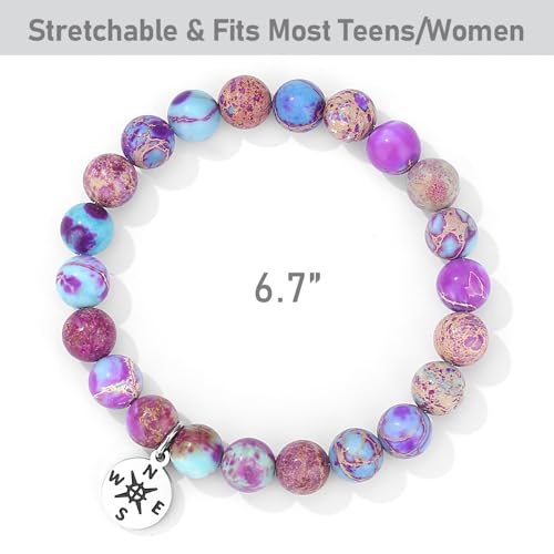 • 【Cute Bracelet+Graduation Cap Box】This handmade bracelet combined with Imperial Jasper and Meaningful Compass Charm. Imperial Jasper makes her fearless and brings her security and strength. Package Includes a funny graduation cap box and a card with message 'The adventure begins', 'Behind you all your memories...' it works amazing as graduation gifts for her, class of 2025 graduation gifts, cool middle school high school college 8th grade graduation gifts.