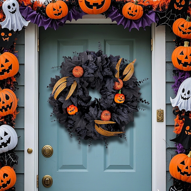 $23.99 - Halloween Wreath for Front Door Indoor Outdoor Decoration, Black Maple Leaf and Twig Garland with Faux Pumpkins, Spooky Vine Ring for Party Decor 2025. Shop for cheap Halloween Wreaths & Floral Decorations online? Buy at lightinthebox.com on sale today!
