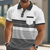 More information about Men's Stripes Polo Short Sleeve Polo Shirts Collared Shirts Business Casual Outdoor Athleisure Daily Wear Pocket 3D Print Buttons Summer Blue Brown Green