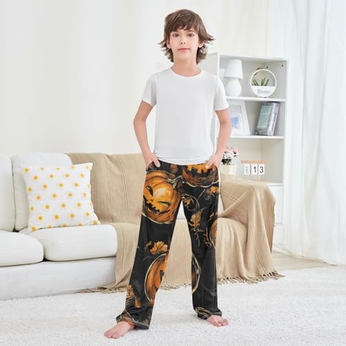 Pumpkin and Leaf Boys Long Pants Soft Trousers Elastic Waist Kids Lounge Bottoms with Pockets S-XL 6