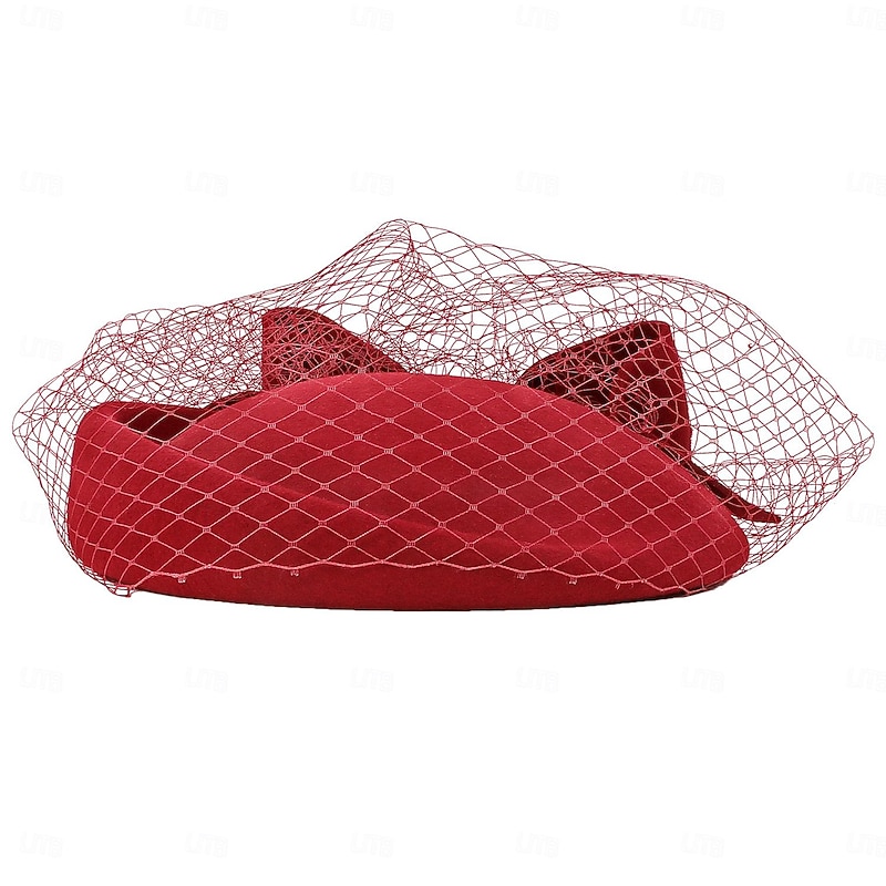 More information about Hats 100% Wool Beret Hat Fedora Hat Wedding Cocktail Elegant Wedding With Pure Color Tulle Headpiece Headwear