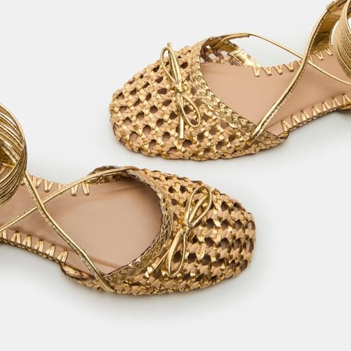 Woven Ballet Flats for Women Square Toe Lace Up Flats Cute Bow Ballerina Shoes 7