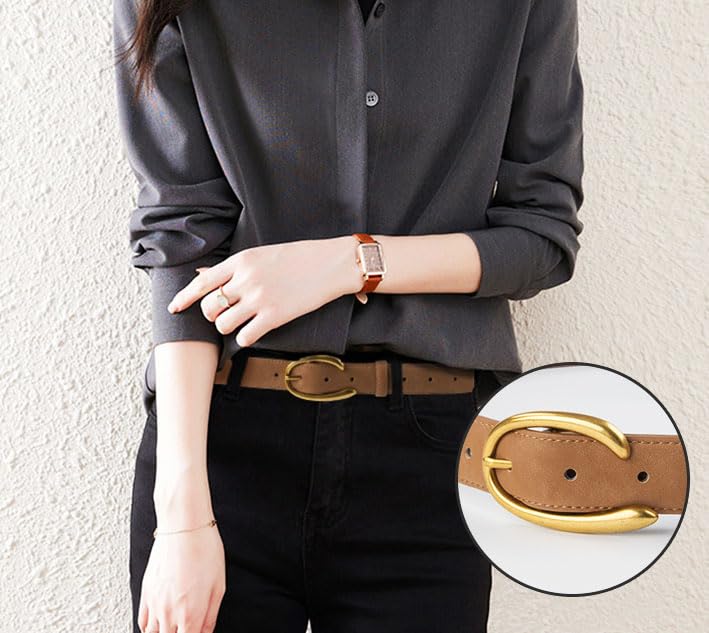 More information about Women Leather Belt for Jeans Pants Dresses Fashion Designer Belt Suede Belt with Gold Buckle