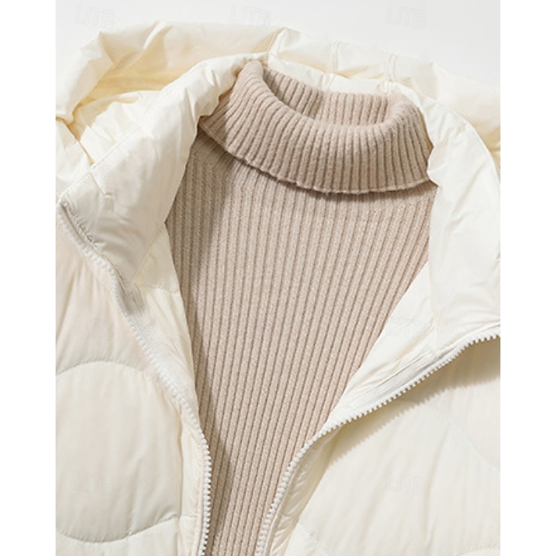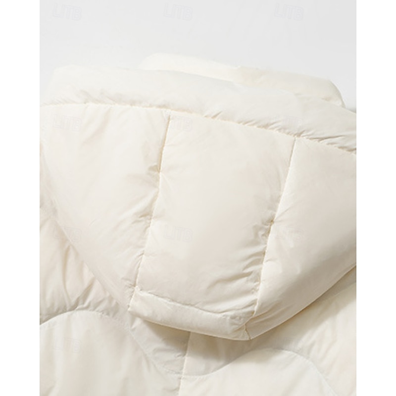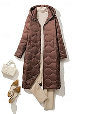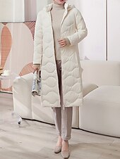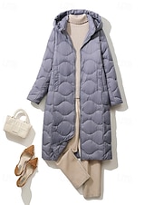 More information about Women's Down Jacket Coat Warm Comfortable Zipper Pocket Casual Plain Outdoor Vacation Holiday Going out Zipper Long Hooded Regular Fit Long Sleeve Outerwear Light Blue White Purple Fall Winter