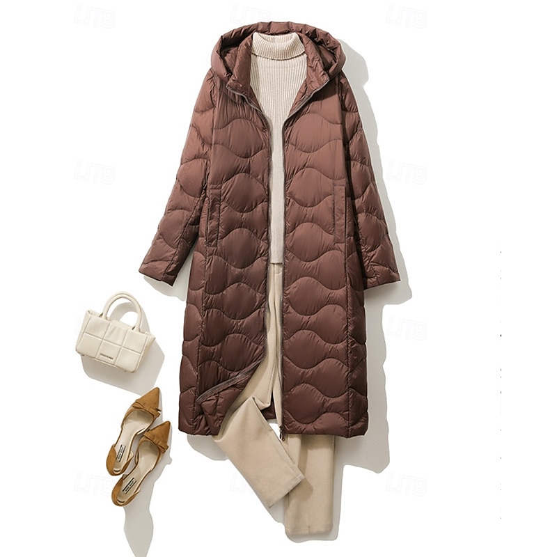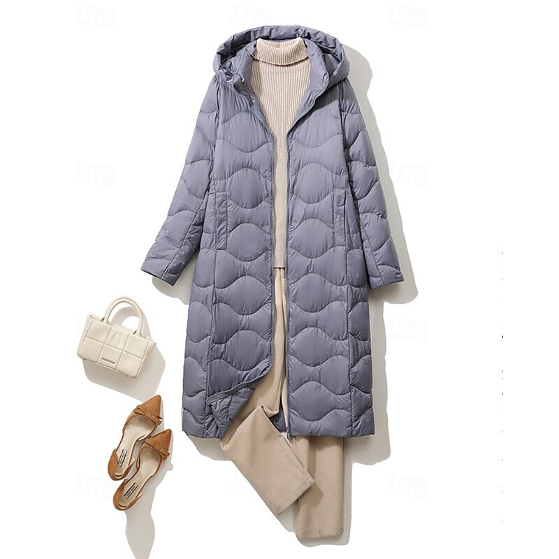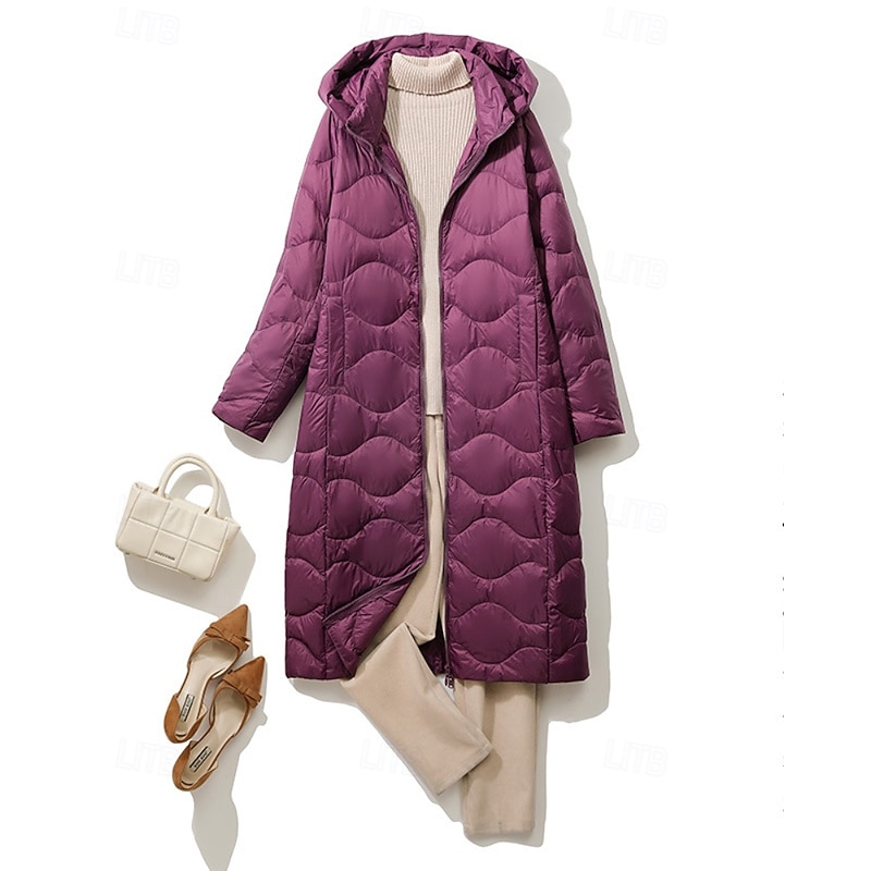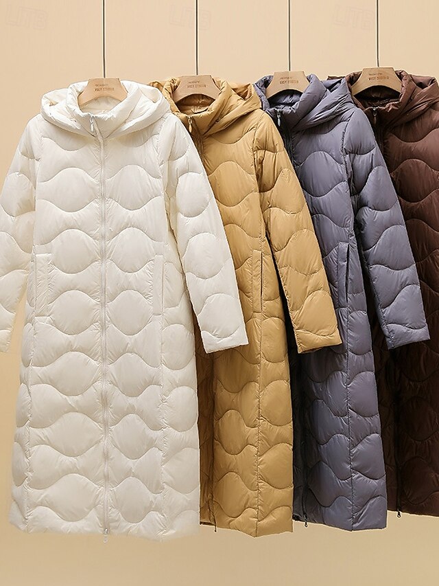 Women's Down Jacket Coat Warm Comfortable Zipper Pocket Casual Plain Outdoor Vacation Holiday Going out Zipper Long Hooded Regular Fit Long Sleeve Outerwear Light Blue White Purple Fall Winter 12