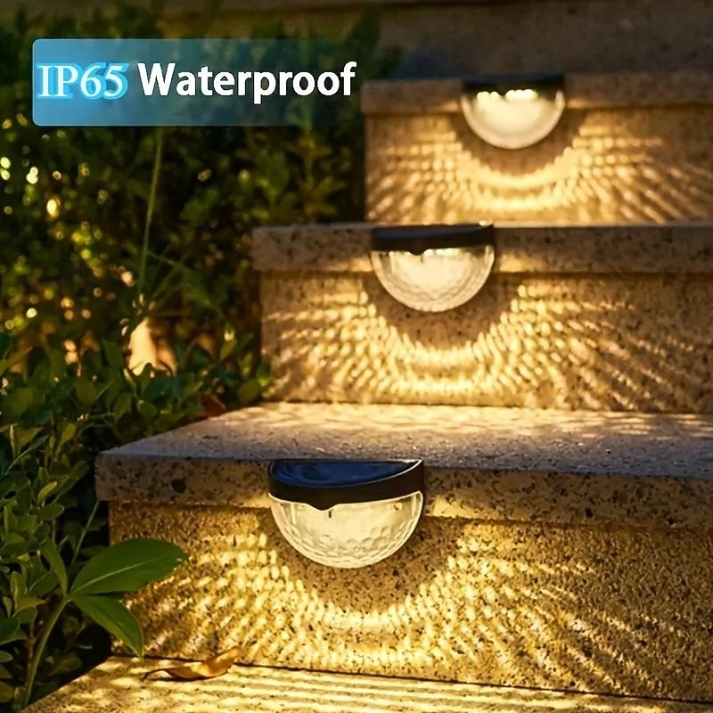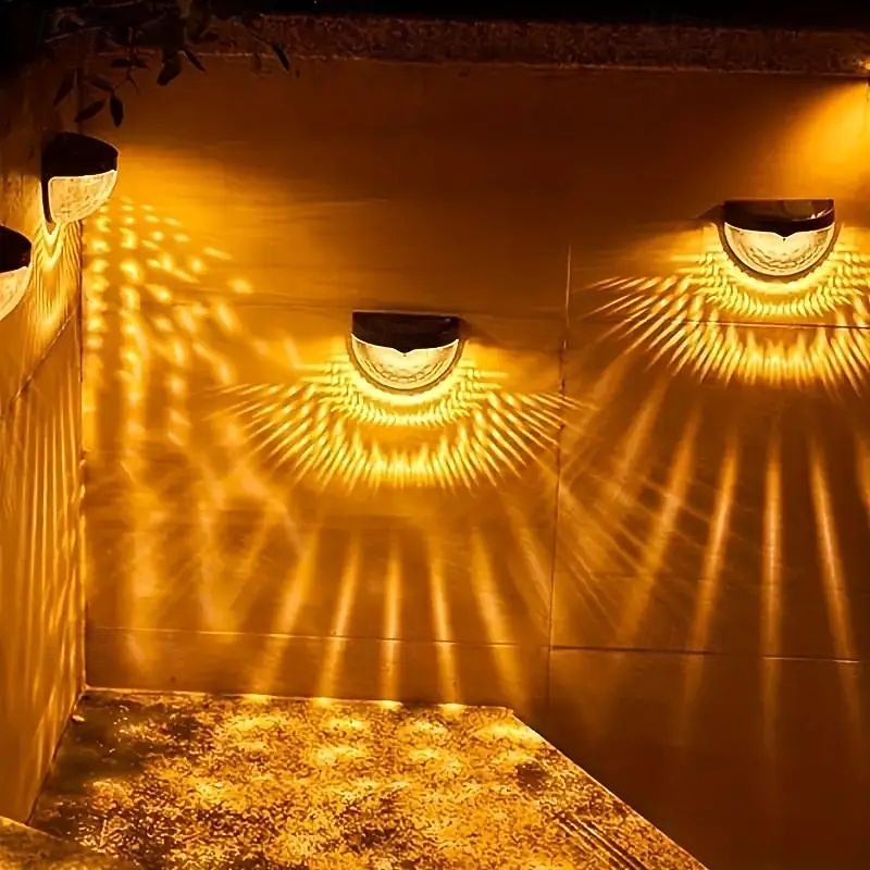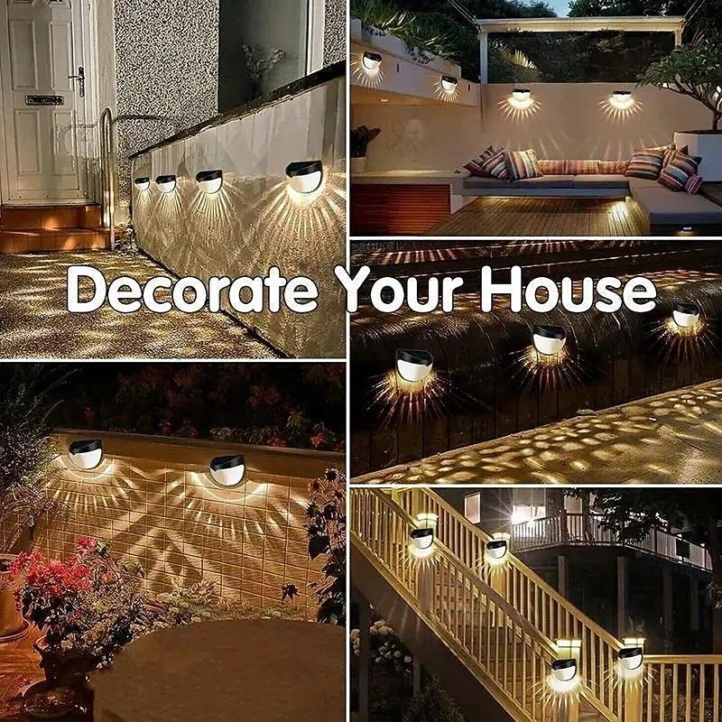 HOT ! 4 Pcs Outdoor Waterproof Solar Wall Light Courtyard Garden Fence Staircase Wall Balcony Fence Lighting White Light Warm Radiant Light