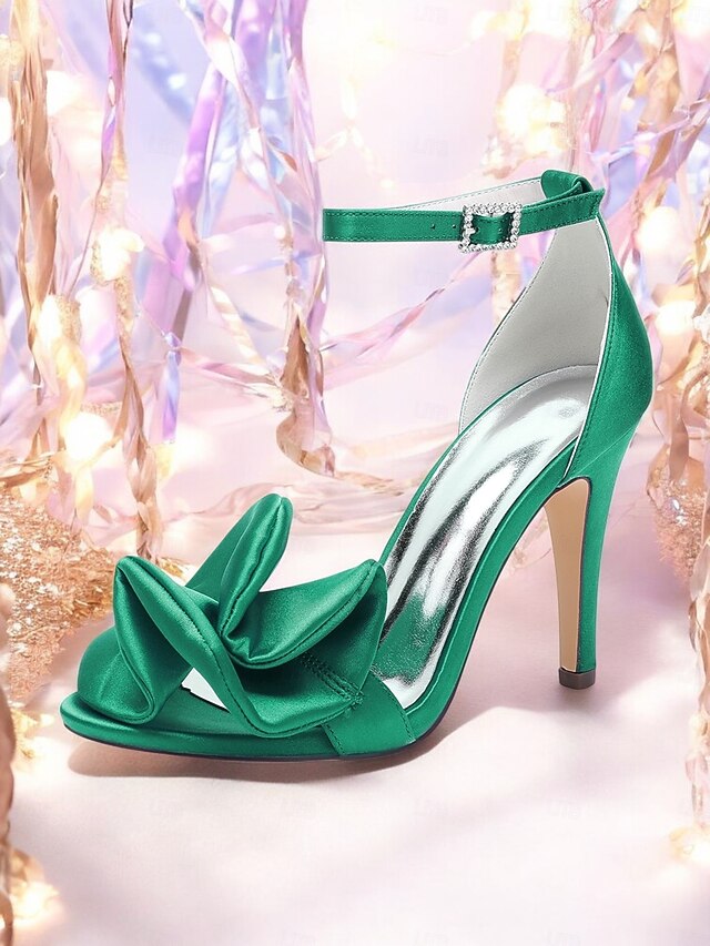 Women's Green Satin Peep-Toe High Heel Sandals – Elegant Bridal Shoes for Weddings and Special Events 32