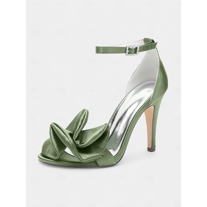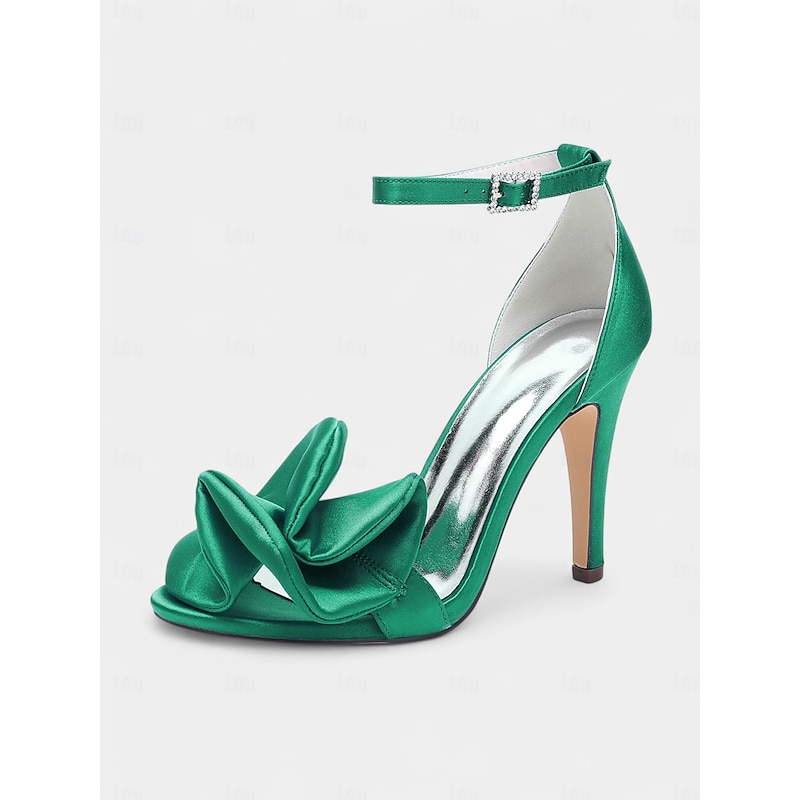 Women's Green Satin Peep-Toe High Heel Sandals – Elegant Bridal Shoes for Weddings and Special Events 25