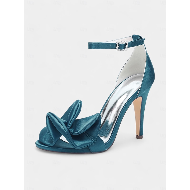 Women's Green Satin Peep-Toe High Heel Sandals – Elegant Bridal Shoes for Weddings and Special Events 17