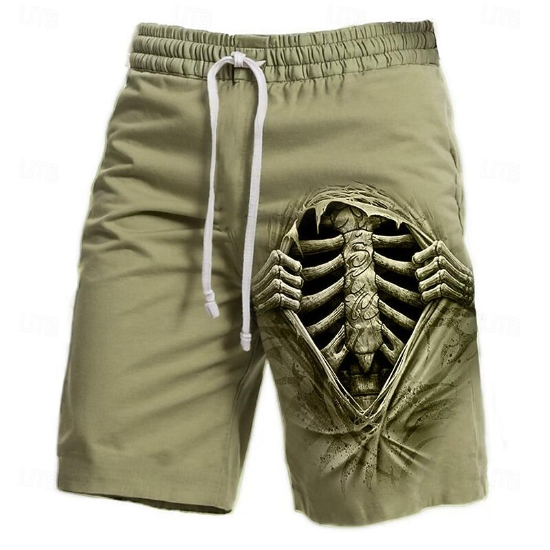 More information about Men's Optical Illusion Skeleton Halloween Costumes Sweat Shorts Beach Shorts Terry Shorts Mid Waist Vintage Casual Daily Holiday Streetwear Drawstring Elastic Waist 3D Print Designer Clothing Apparel