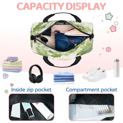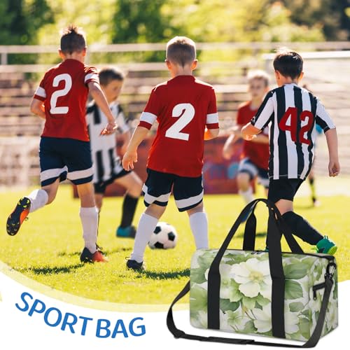 Sage Green Flowers Travel Duffel Bag for Women and Men, Sport Tote Gym Bag Carry on Weekender Overnight Bags 5