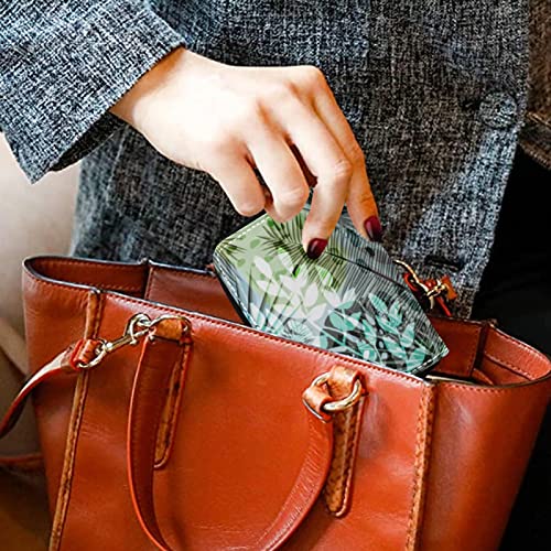 HOT ! Seamless Exotic Tropical Plants Palm Tree Leaves in Retro StyleGrey Credit Card Coin wallet, RFID Blocking Compact Women Leather Card Holder, Key Change Organizer, Zipper Purse Clutch Pouch