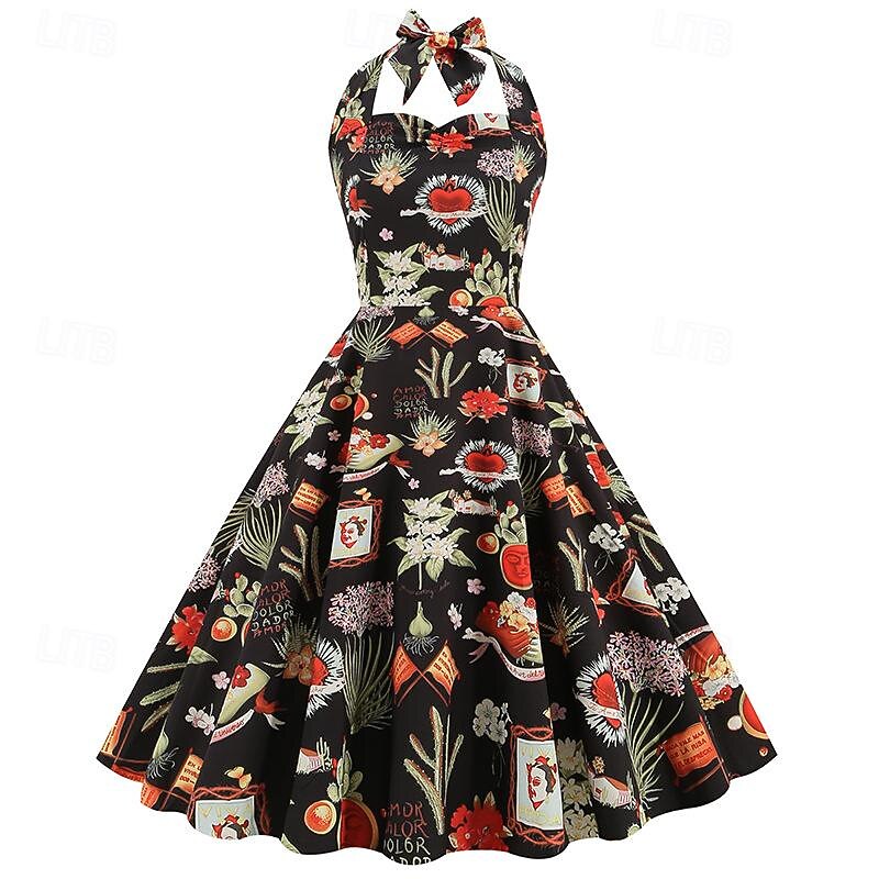 HOT ! Retro Vintage 1950s Rockabilly Swing Dress Flare Dress A-Line Halter Neck Fancy Dress Women's Carnival Tea Party Casual Daily Retro Theme Party Adults Dress Spring & Summer