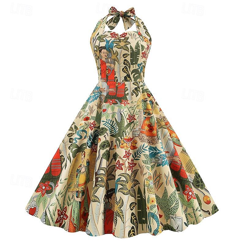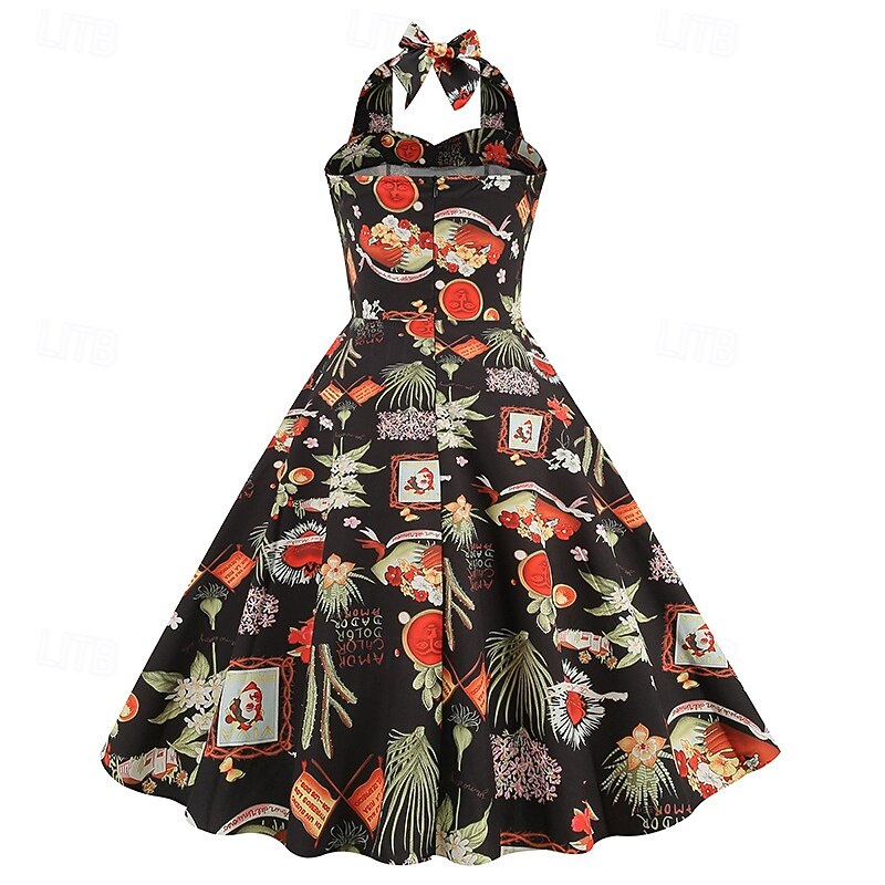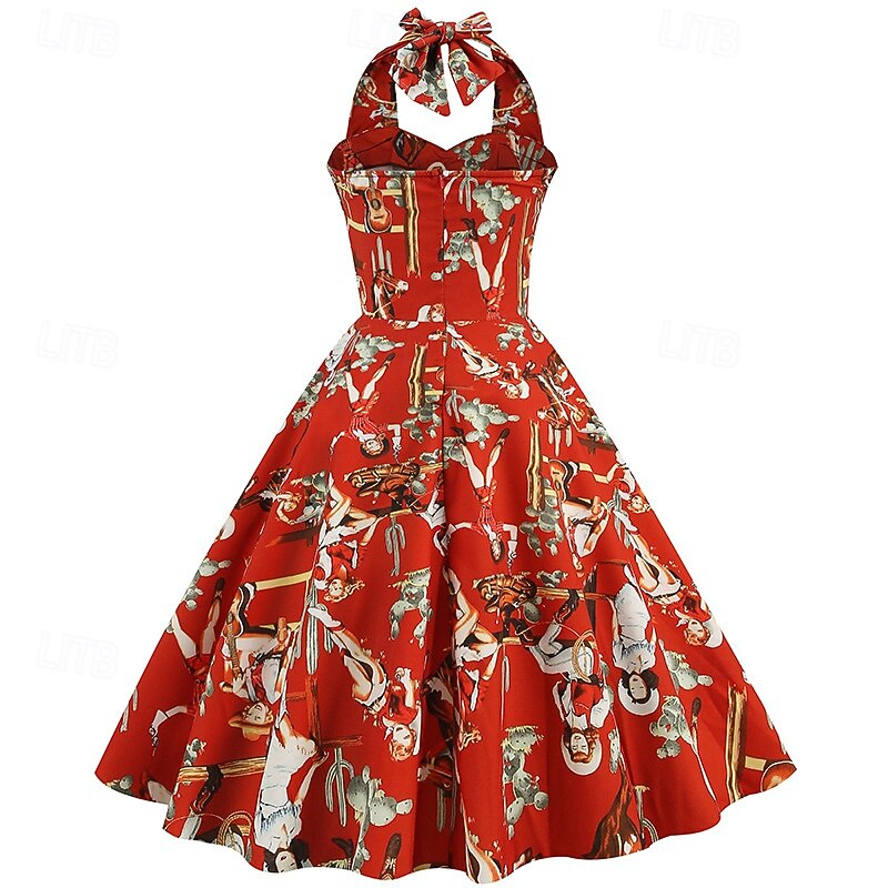 More information about Retro Vintage 1950s Rockabilly Swing Dress Flare Dress A-Line Halter Neck Fancy Dress Women's Carnival Tea Party Casual Daily Retro Theme Party Adults Dress Spring & Summer