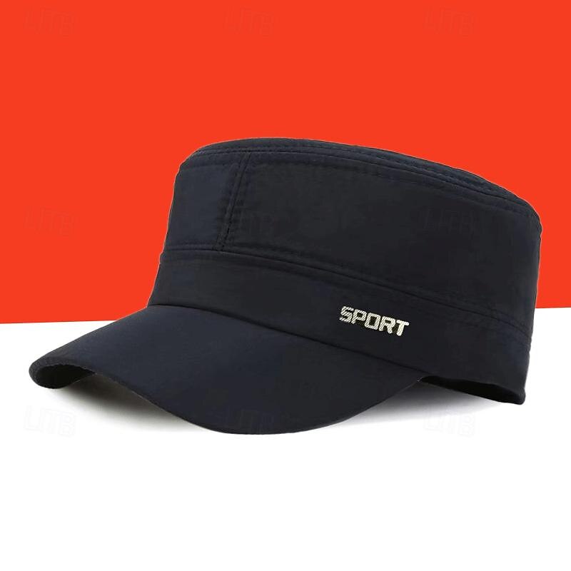Highlights [Fabric] : Crafted from a durable blend of polyester, this men's flat cap is designed to provide a comfortable and breathable feel. The high-quality material ensures that it is suitable for daily wear and outdoor activities in the summer months. [Style] : This cap features a classic military-style silhouette with a flat top and structured brim, giving it a timeless and versatile look. Its casual and fashionable style makes it an ideal choice for various occasions, whether you're on the street or enjoying daily activities. [Design Highlights] : Embellished with the word "SPORT" embroidered on the side in a sleek font, the cap adds a touch of modernity to its design. The adjustable fit ensures that it caters to different head sizes for optimal comfort and wearability. [Occasions] : Perfect for casual outings, streetwear, and daily occasions, this cap is a must-have for men who appreciate both functionality and style. Its breathable and sunscreen features make it suitable for summer days, providing protection while keeping you cool. [Size] : Available in one size, this cap offers an adjustable fit that accommodates various head sizes, ensuring a comfortable and secure wear for a wide range of users.