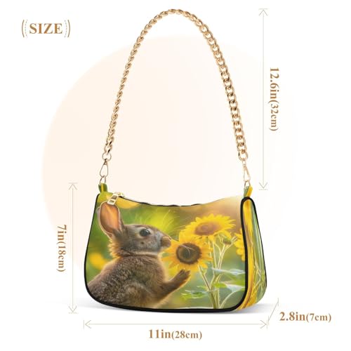 Shoulder Bags for Women Rabbit Sunflower Tote HandBag Shoulder Bags purse with Chain Zipper Closure 5