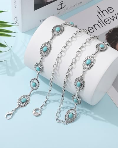 HOT ! AWAYTR Western Turquoise Belt for Women - Cowgirl Concho Chain Belts for Jeans Dresses Country Concert Outfit