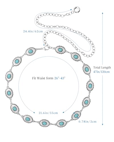 AWAYTR Western Turquoise Belt for Women - Cowgirl Concho Chain Belts for Jeans Dresses Country Concert Outfit 7