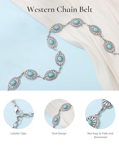 AWAYTR Western Turquoise Belt for Women - Cowgirl Concho Chain Belts for Jeans Dresses Country Concert Outfit 5